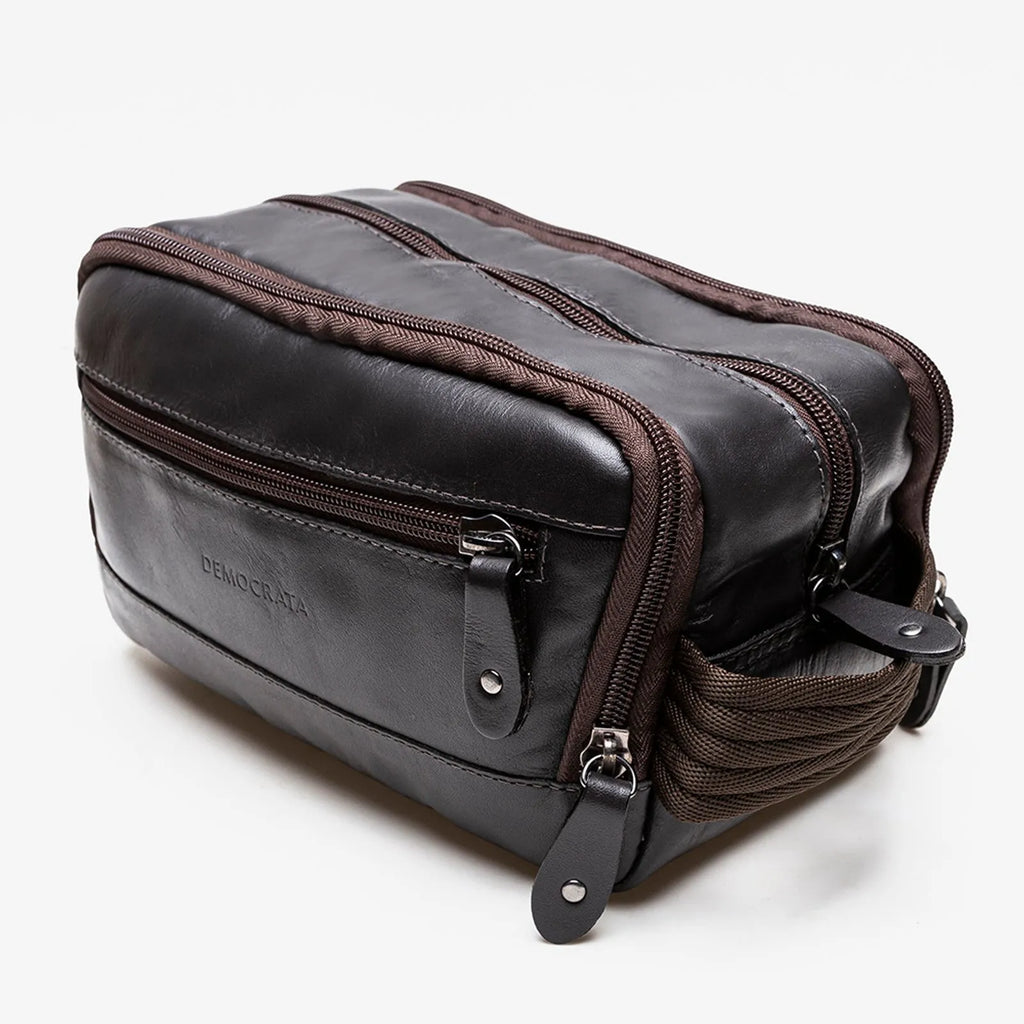 A necessaire em couro ideal para quem não quer deixar nada para trás. Super espaçosa, e muito bem dividida, conta com 3 divisões sendo a principal para acomodar os itens maiores, e as laterais para lhe ajudar na organização dos demais itens, perfeita para viagens. Prática, leve e resistente, com certeza será uma companheira de longa data.